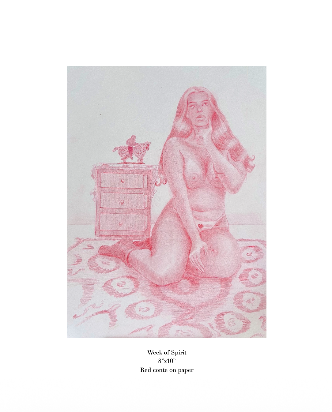 approaching the female form from my own position—as a woman looking slowly, deliberately. I was interested in weight, softness, appetite, and confidence, not idealization. This drawing leans into pleasure and presence: a body aware of itself, comfortable taking up space, and fully at ease in its own gravity..