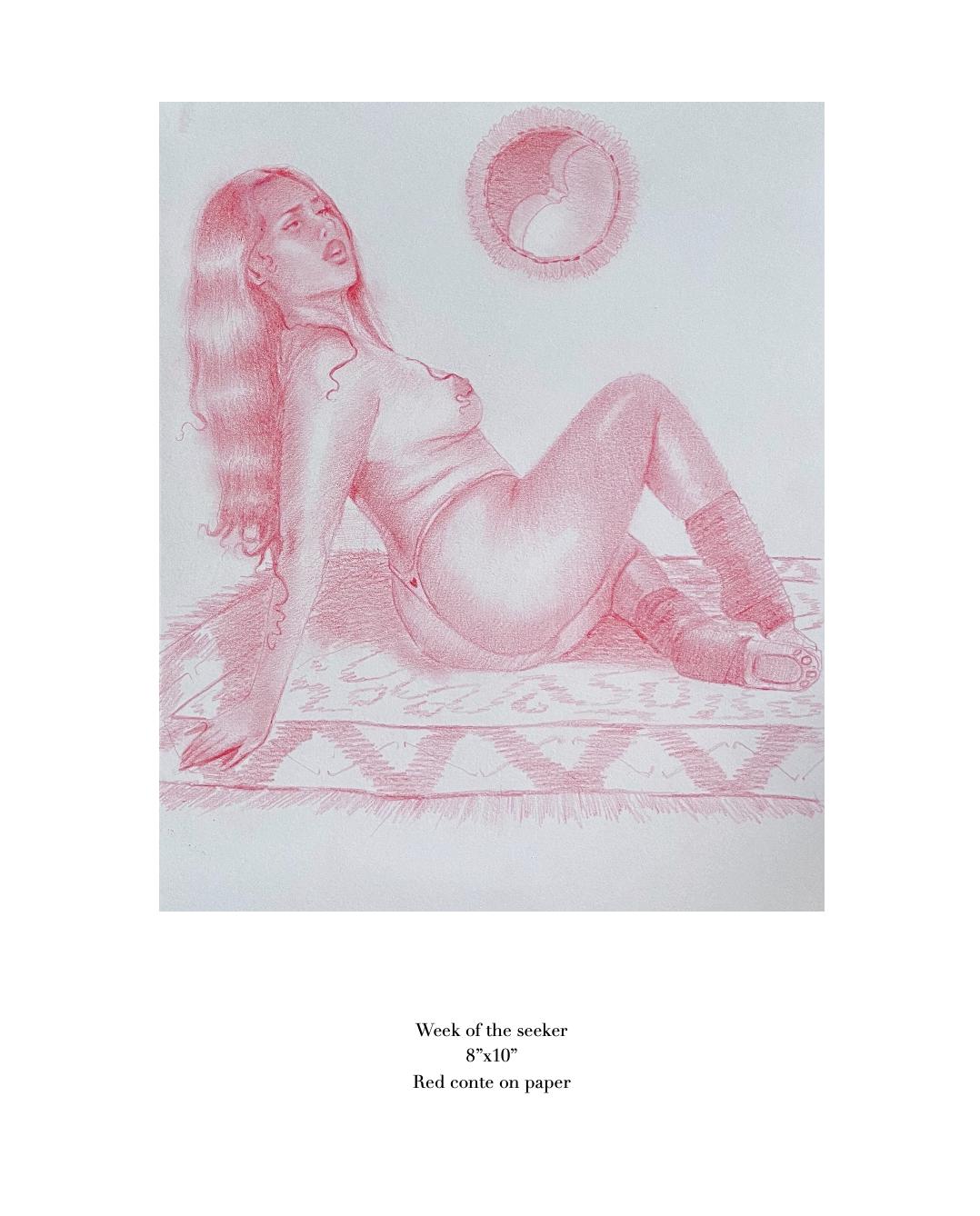 This drawing is a homage to Lisa Yuskavage and her refusal to make work that behaves. In the early 90s, she set a course that challenged expectation and made space for a different kind of voice—one that didn’t ask for permission.